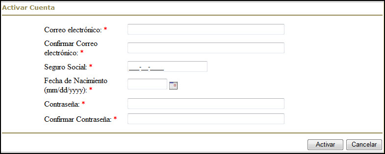 Formulario de Activación de Cuenta