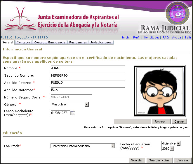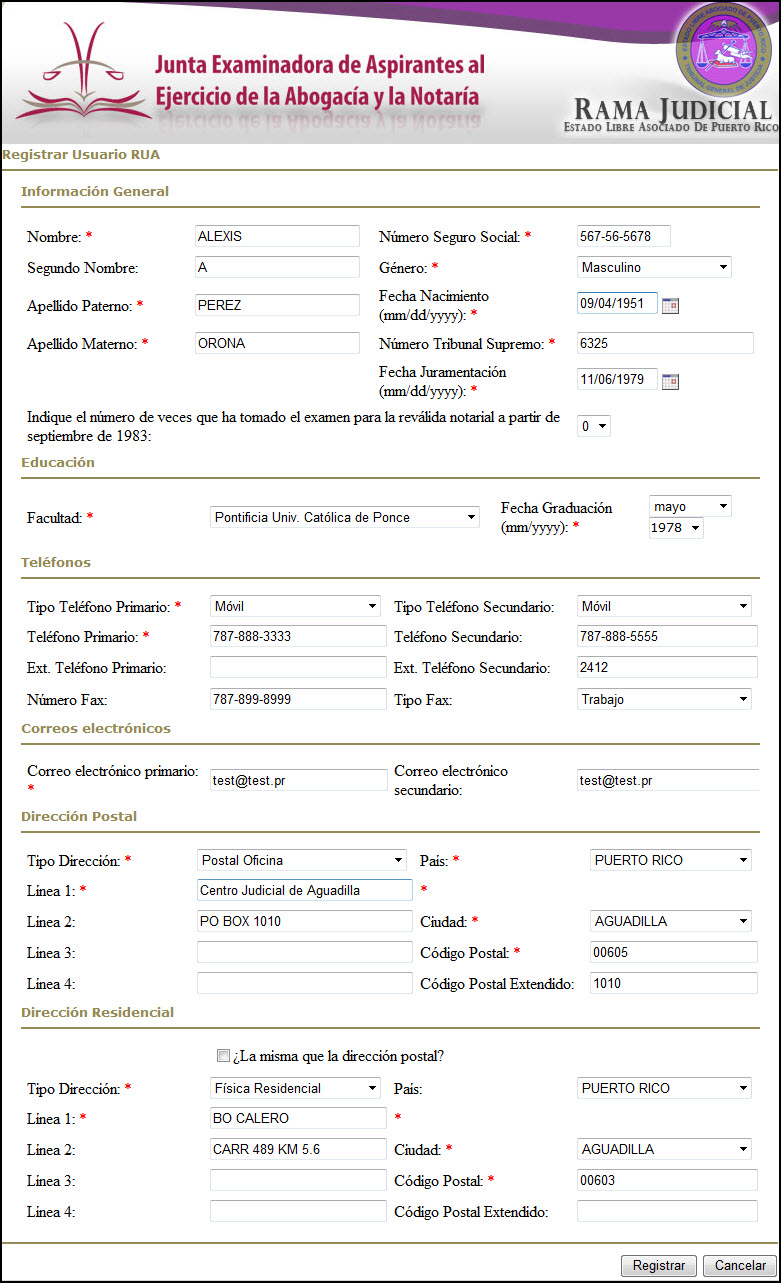 Ejemplo de Datos para Abogado(a) Revalidado(a)