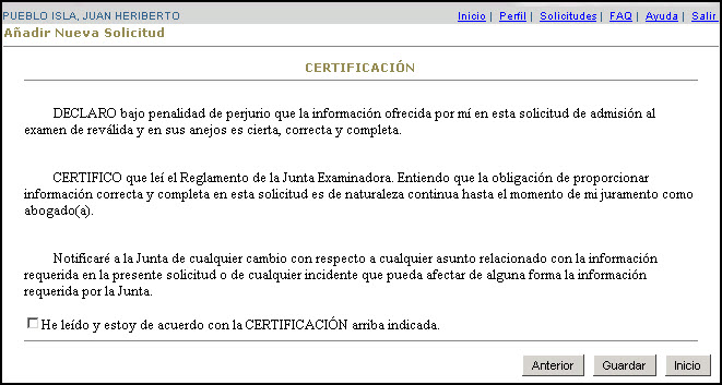 desea someter su solicitud lea cuidadosamente la Certificación. Si está de acuerdo, marque