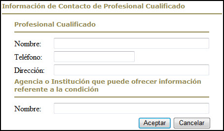 Página de Información para Contacto de Emergencia