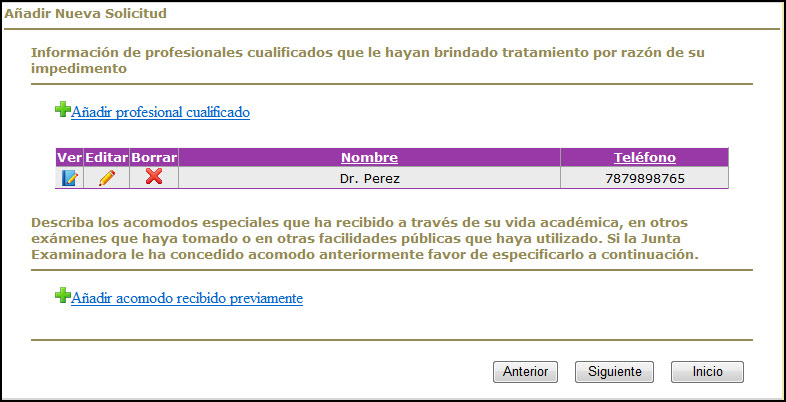 Nota: Se recomienda completar los campos marcados con una cruz azul (por ejemplo: Teléfono 1 + ); estos campos son opcionales para la creación del registro, pero serán requeridos antes de poder someter una solicitud de examen de reválida.