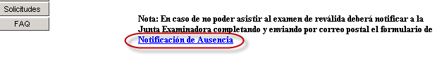 La nota sobre la Notificación de Ausencia requerida cuando el solicitante no puede asistir a un examen de reválida ofrece un enlace para obtener el documento que deberá ser utilizado para completar el trámite:
