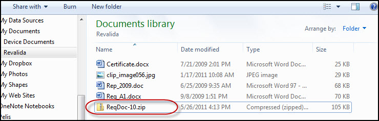 El usuario(a) puede dejarle ese nombre o cambiarlo, teniendo cuidado de no cambiar la extensión ".zip" En este ejemplo, se le cambió el nombre a "ReqDoc-10.zip":